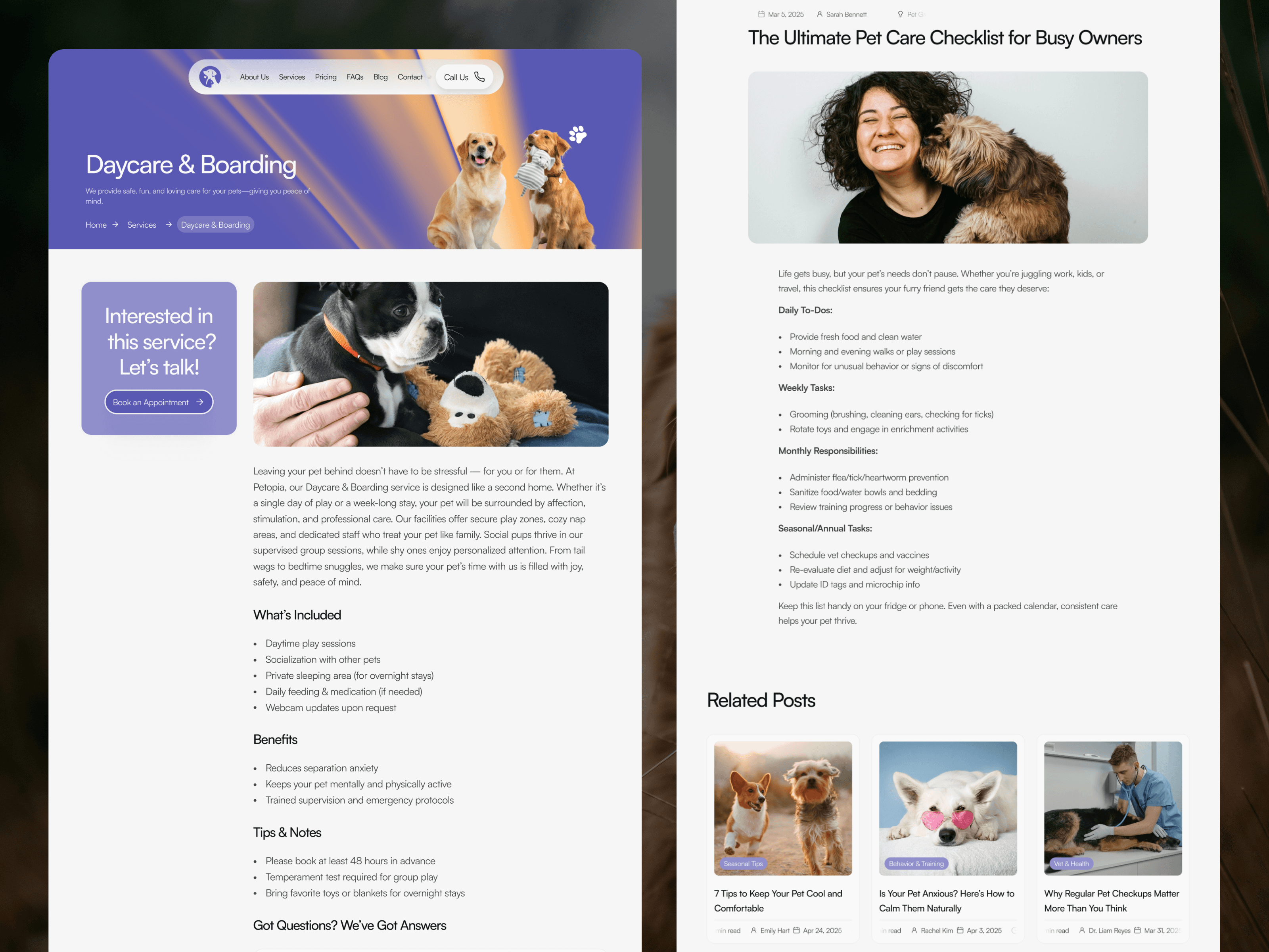 Designed to build trust and drive bookings, Pawnest is perfect for solo professionals and growing pet care brands alike. Get started fast and launch your pet-friendly site today.