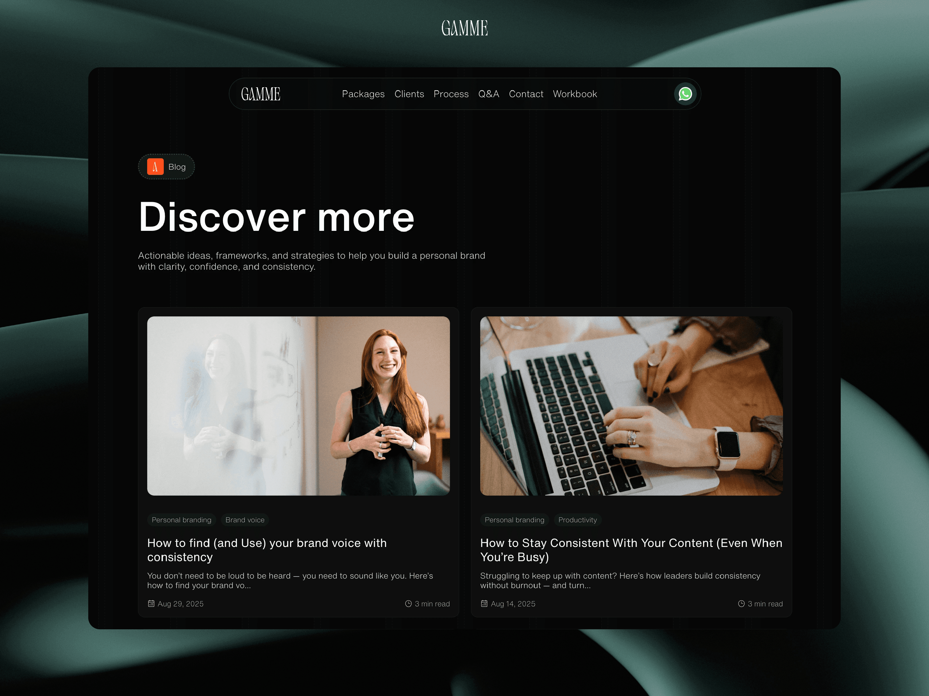 The final outcome is a high-end, modern website that reflects Gamme’s identity as a premium player in the personal branding space.